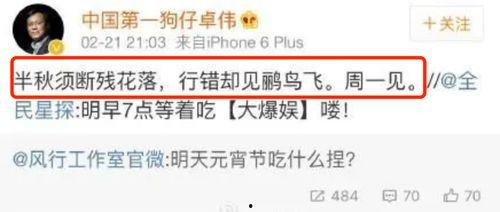 卓伟老师可是娱乐圈的“狗仔鼻祖”,他的爆料向来都是重磅炸弹。这次,他曝光的准顶流明星,可是让粉丝们激动不已。不过,具体是谁呢?这就需要我们细细挖掘了。